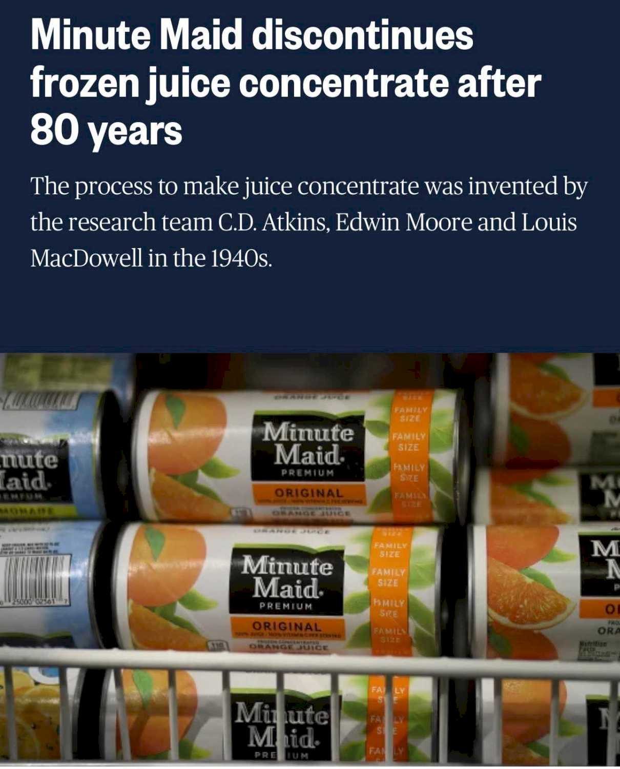 Alex Morton Same juice concentrate that's now used in the stuff that comes in jugs. I seem to remember that the trick to opening frozen orange juice was to open both ends and push it through, the same way you do with the solid kind of canned cranberry sauce.